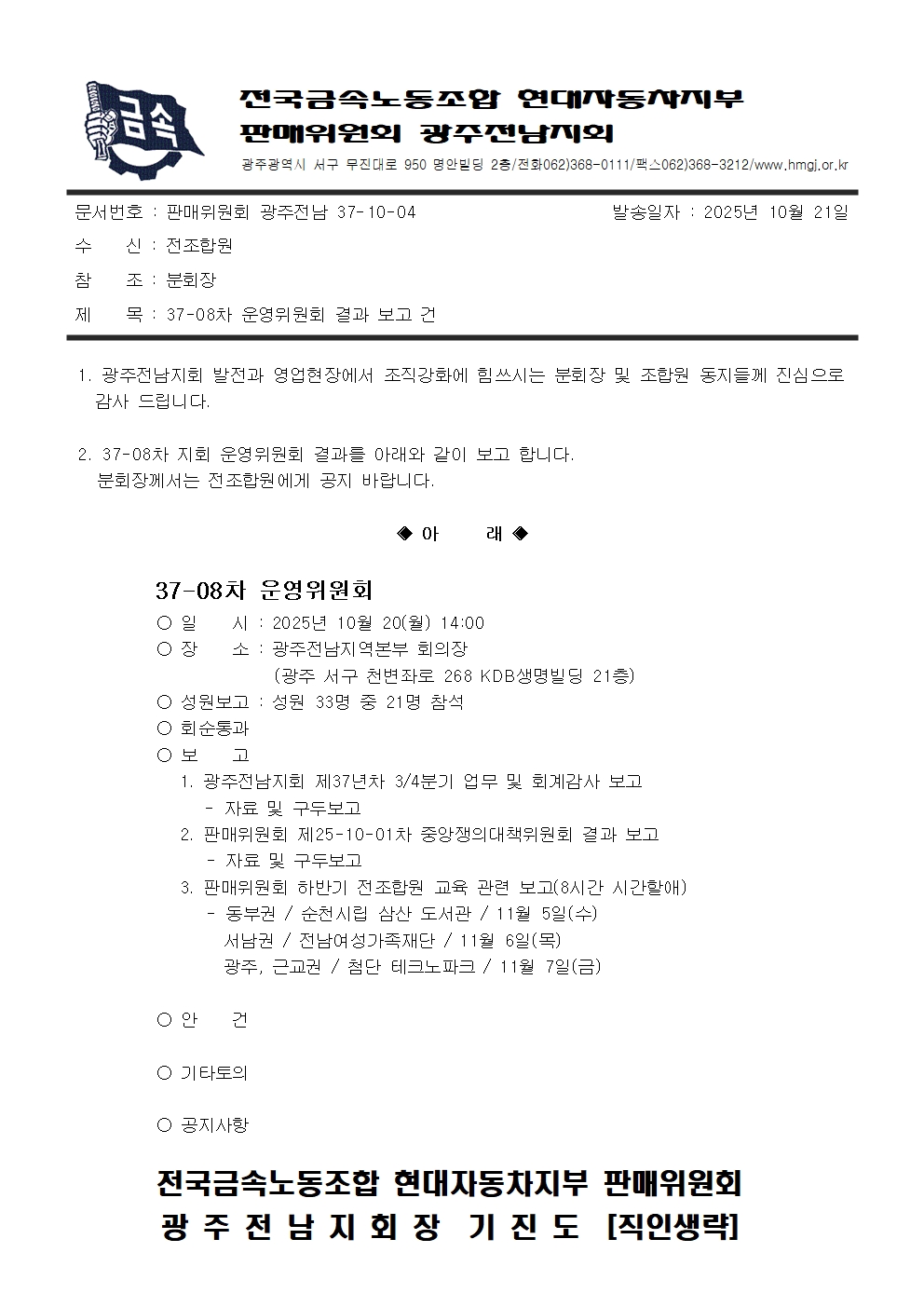 (37-10-04)37-08Â÷ ¿î¿µÀ§¿øÈ¸ °á°ú º¸°í °Ç