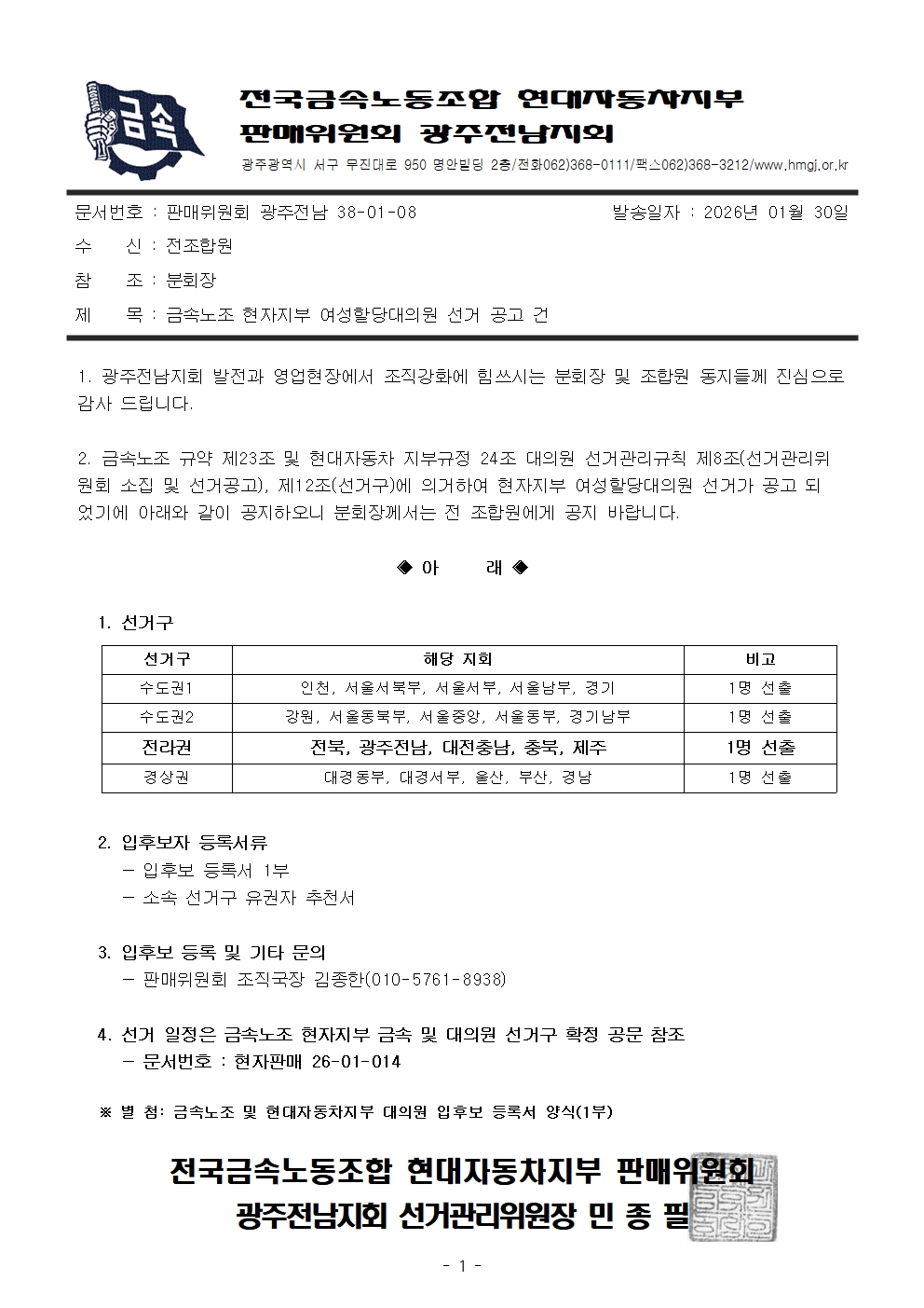(38-01-08)±Ý¼Ó³ëÁ¶ ÇöÀÚÁöºÎ ¿©¼ºÇÒ´ç´ëÀÇ¿ø ¼±°Å °ø°í °Ç