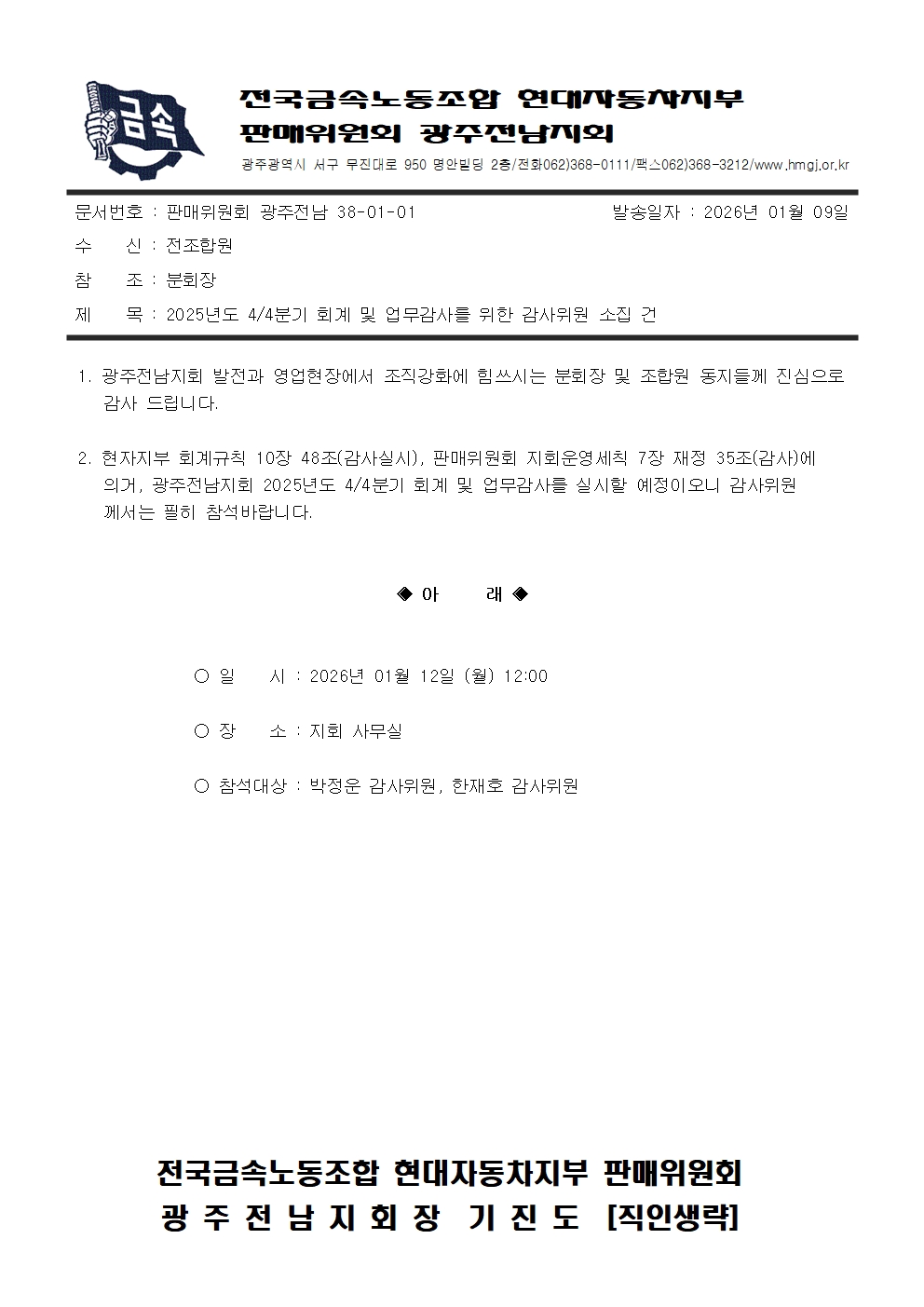 (38-01-01)2025³âµµ 4/4ºÐ±â ȸ°è ¹× ¾÷¹«°¨»ç¸¦ À§ÇÑ °¨»çÀ§¿ø ¼ÒÁý °Ç