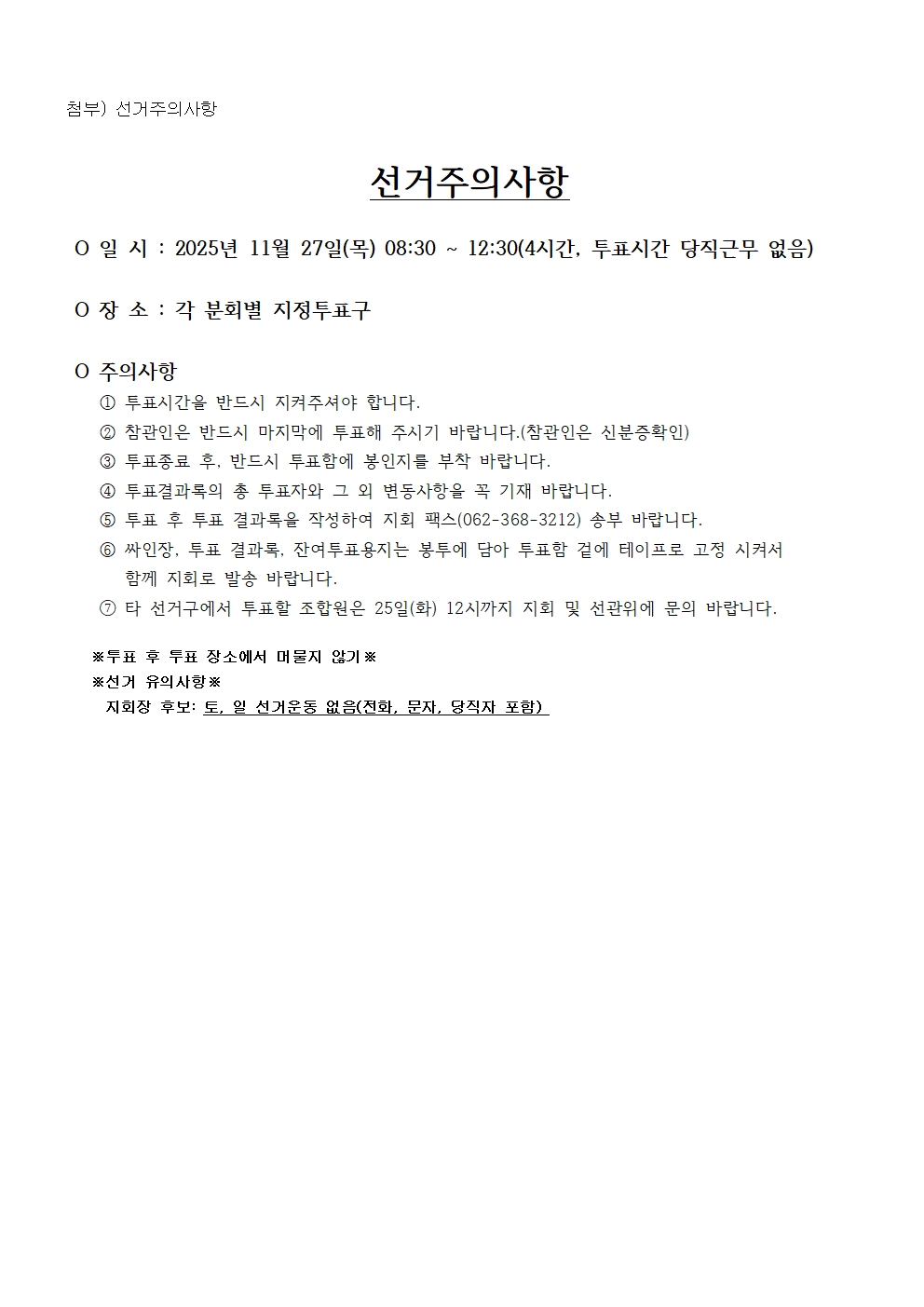 (37-11-04)±¤ÁÖÀü³²Áöȸ Á¦ 11´ë ¼±°Å ÅõÇ¥ÀϽà ¹× ÅõÇ¥±¸ °øÁö °Ç